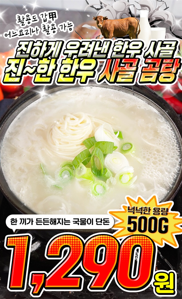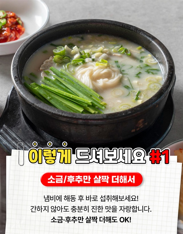 국내산 한우뼈로 푹 우려낸 (찐곰탕) 뽀얀국물