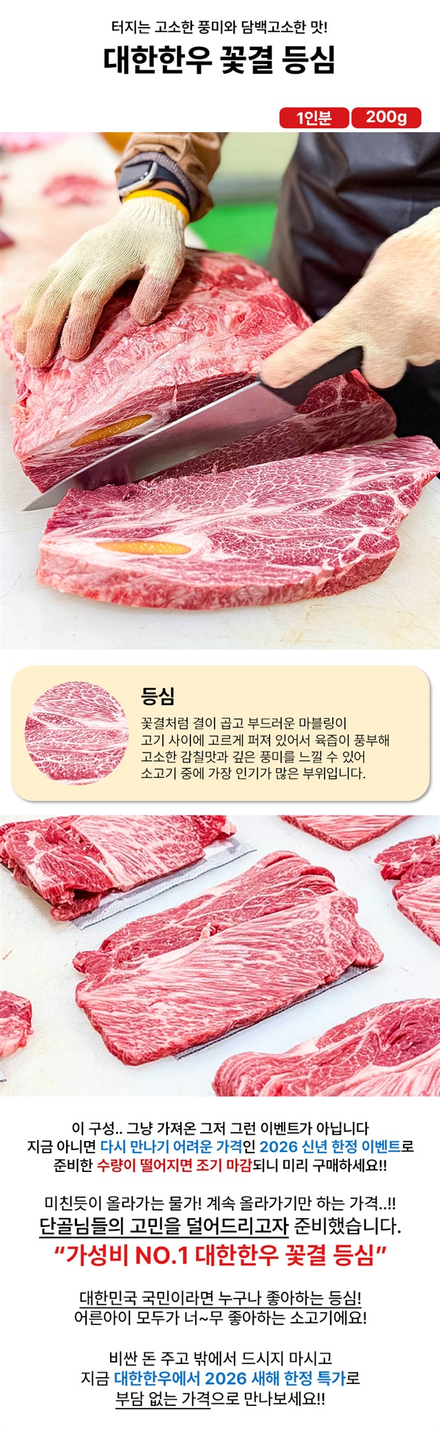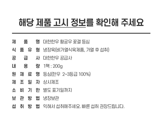 이 가격에, 이런 품질 좋은 등심은 대한한우뿐!