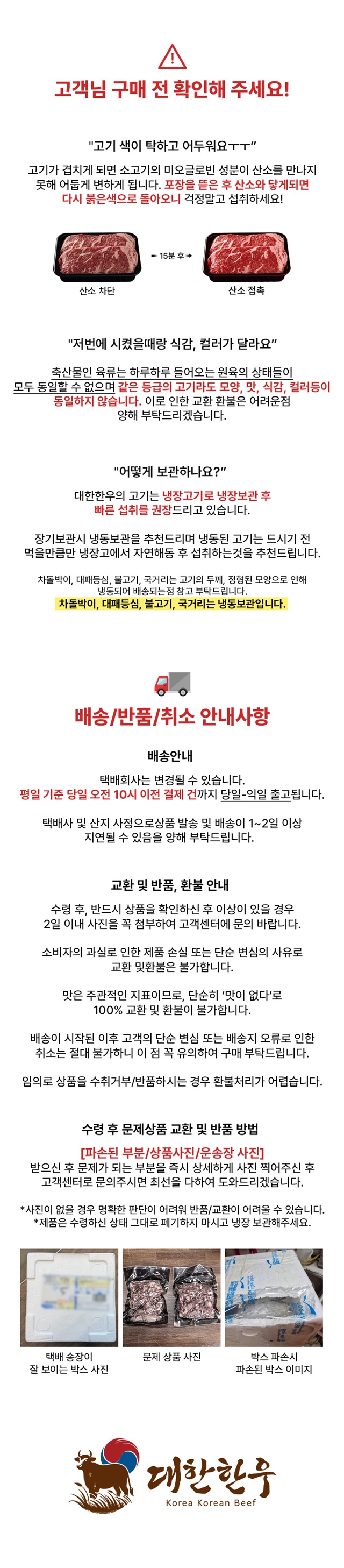 · 상품 불량 사유와 사진을 남겨 주시면 빠른 처리가 가능합니다.